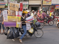 Buying a new scooter in Saigon, although one of the richest Vietnam cities, is still a luxurious undertaking. Consequently, on the streets you can still find mostly very old models, dating from the past when Vietnam was a part of communist block under thight Soviet survelliance. This real ''scooter veterans'' from communist era can mostly be found in early dawn, hidden under their laod of mostly anything that you can think of. Most of the load that You can find on this scooters, for sure, would even surprise famous Soviet engineers, known for building extremely durable stuff.