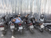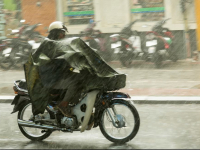 This typical life on two wheeled vehicles is something that Saigon inhabitants are doing everyday and usually, deep into the night. Except obivious traffic restrictions, one of the important things that are causing this is absence of cooler periods during day and night. The same goes for tropical rain........ When rain comes pouring down, drivers are stoping just for few seconds in order to cover themselves with practical raincovers. Very quickly, they are continuing into the busy traffic. Like with tires, very quickly, you can find thousands of merchants along the streets ready to sell anykind of raincover that you can use. Usually, for a noutoriosly low price.....