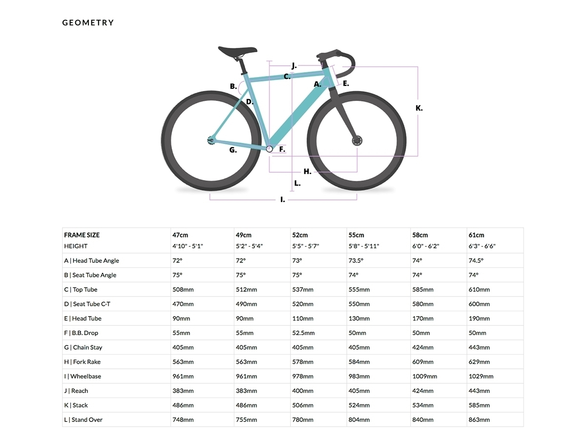 - 55cm: rider height 174 - 184cm