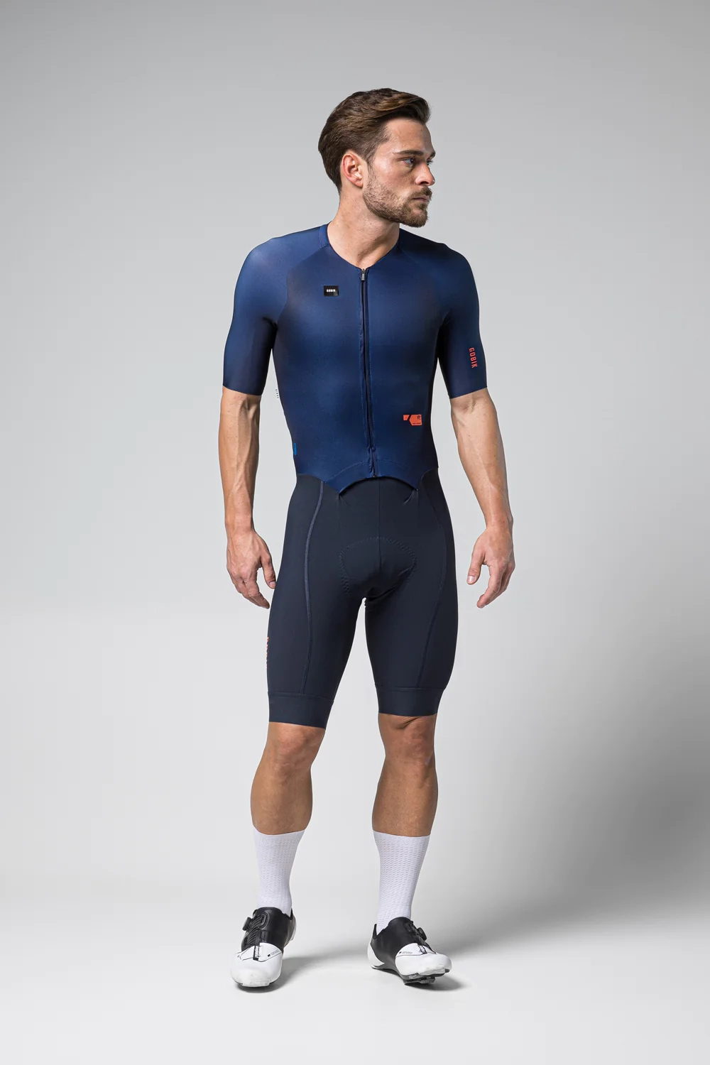 - The 3 pockets in the lumbar area have been designed in the most minimalist way possible, to contribute to the ultralight weight of the garment and to obtain a low profile, maximizing aerodynamics when we go coupled.
