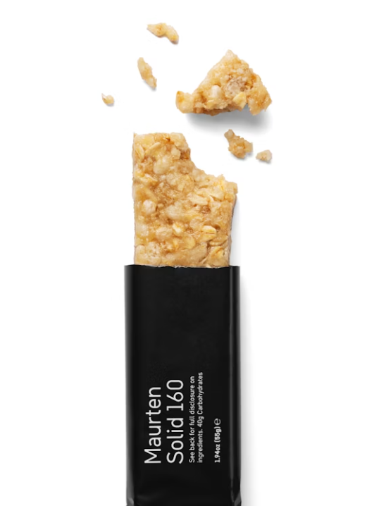 Maurten Solid 160 is a two-piece, oat- and rice-based chewable fuel — 1 pack, 2 mini-bars. 40 grams of carbohydrates split into equal 20-gram servings for optimized fueling. Your go-to fuel — fast, light, low-fiber, and carbohydrate-rich.