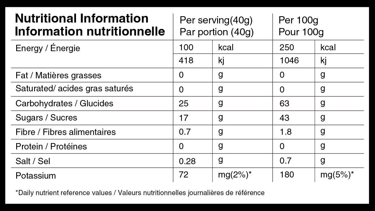 Eco-Friendly Ingredients: Made with agave syrup and tapioca starch—sustainable alternatives that use less water and emit less CO₂ than traditional sugars.