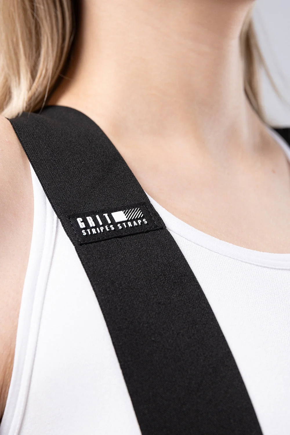 The straps that run over the shoulders are made with contrasting graphene yarn, a material that promotes thermal regulation, offers antibacterial properties, neutralizes odors, and prevents moisture buildup, limiting weight gain from perspiration.