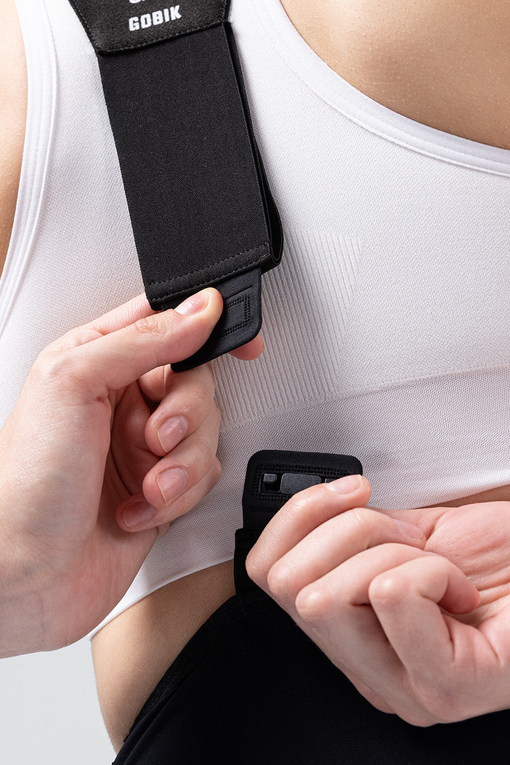 - The ergonomic strap is made with a raw-edge, seamless finish, which significantly enhances the fit. It features a centrally heat-bonded opening that facilitates the release of body heat.