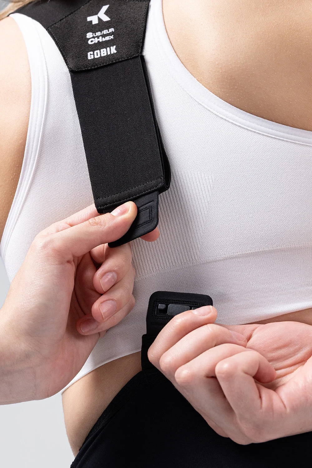 - The ergonomic strap is made with a raw-edge, seamless finish, which significantly enhances the fit. It features a centrally heat-bonded opening that facilitates the release of body heat.