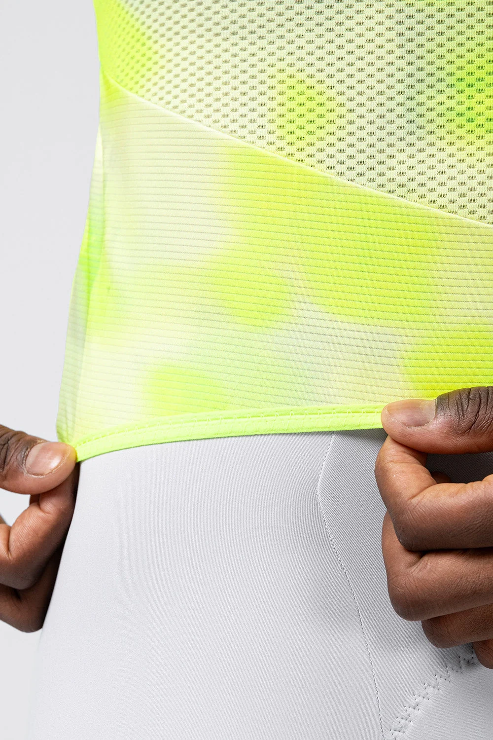 The ultra-light mesh fabric provides excellent breathability, efficiently managing sweat and aiding thermal regulation even in extreme heat and humidity. Every detail has been optimized: the sleeves now do without terminal bands for a cleaner, more modern finish, while the new collar, more open and minimalist, improves ventilation during moments of maximum intensity.