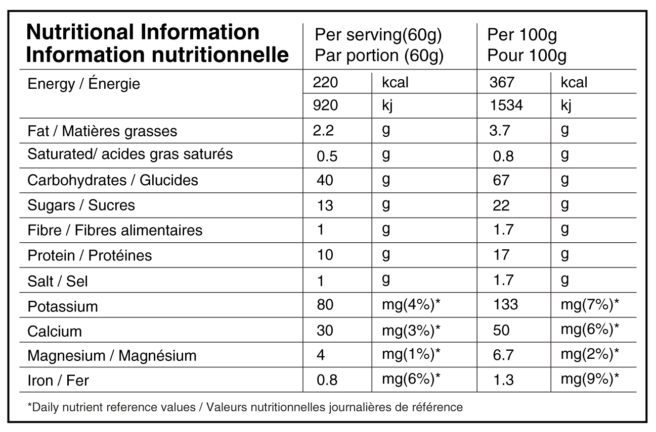 Hydrolyzed oat flour (gluten free), dehydrated rice extract, cane sugar, pea protein isolate, canola protein isolate, sea salt, natural flavours.