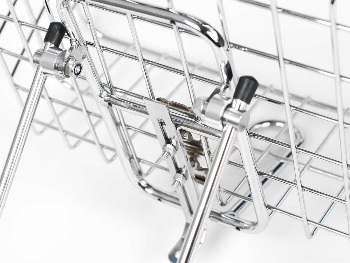 Dual functionality at a fantastic price; combining a finely welded chromed mesh basket with a beautifully finished chrome rack. Simply using two screws this basket fits perfectly to the front rack. Front rack can be used on it’s own or with basket for extra carrying power. Rack fittings are provided with two sets of P-clips making it easy to fit to a wide range of forks.