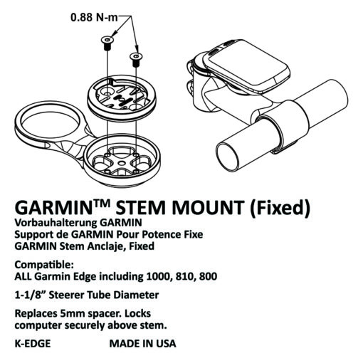 - The K-EDGE Garmin Stem Mount is a great upgrade solution for cyclists who prefer their computer above the stem. Mounting off of the steerer tube, the mount replaces a standard 5mm spacer and is locked securely in place by the top cap compression system.