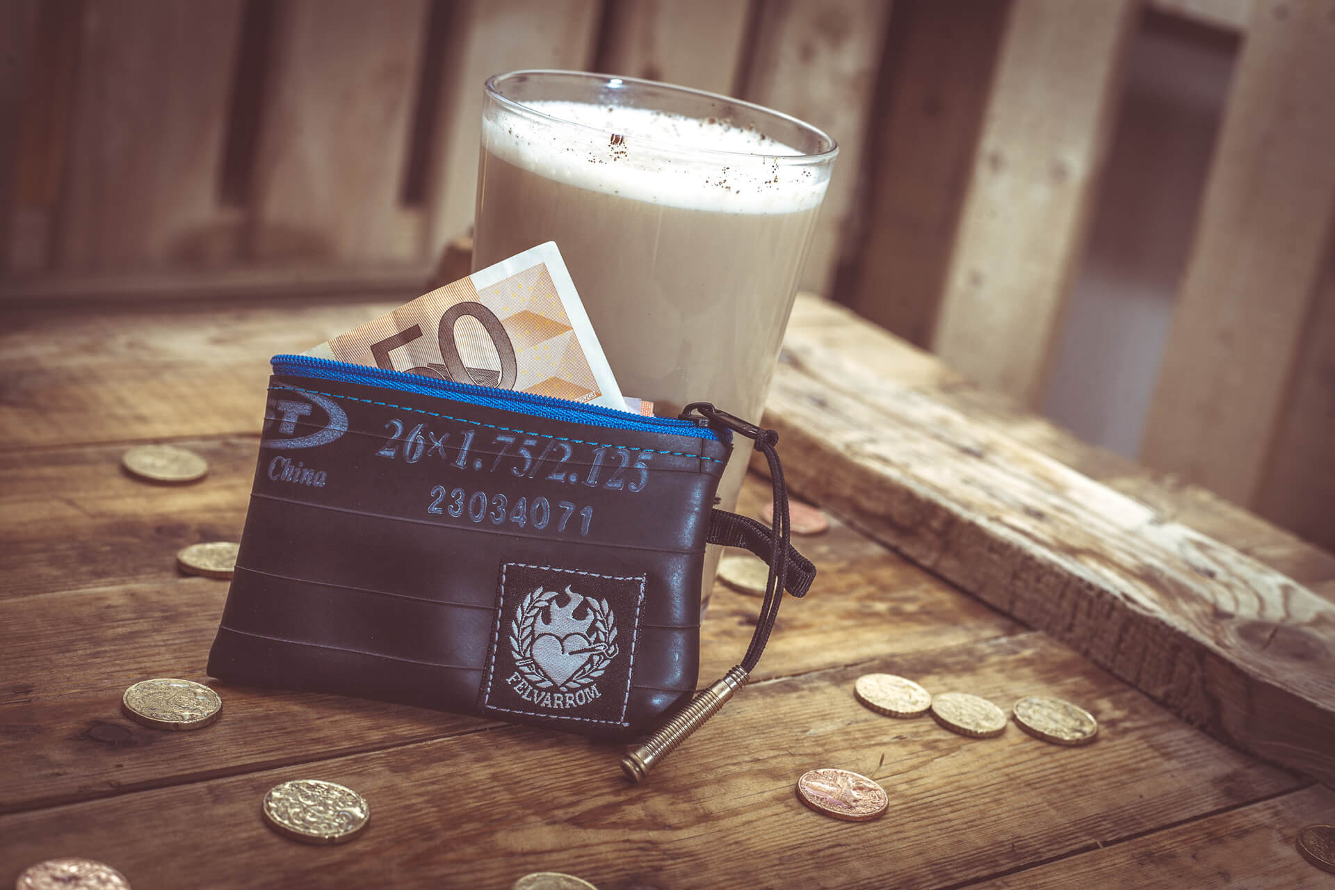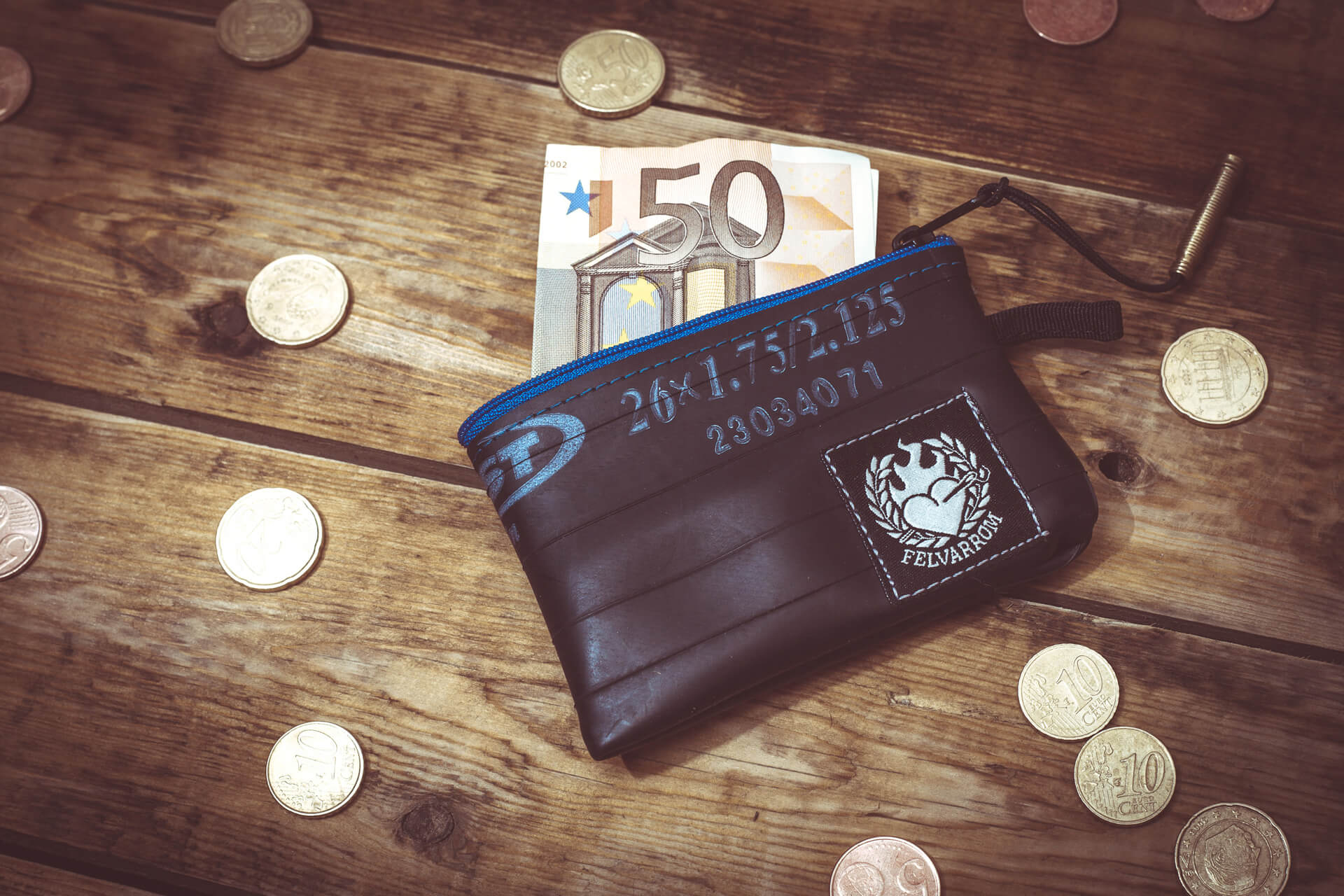 Save the nature! The coin purse (or wallet) is handmade from carefully selected, high-quality, recycled tubes. It can be used for coins, but you can also use it for paper money, handkerchiefs, cards and anything else that comes to your mind. The outside is a carefully cleaned and upcycled bike tube, so you don’t have to worry about your purse leaving stains on your clothes. The inside is a soft, light, black fabric. On the surface of the recycled tube, you will find bicycle patches created in the past life of that tube. The top of the zipper is a recycled tube valve, and the zipper is metal made.