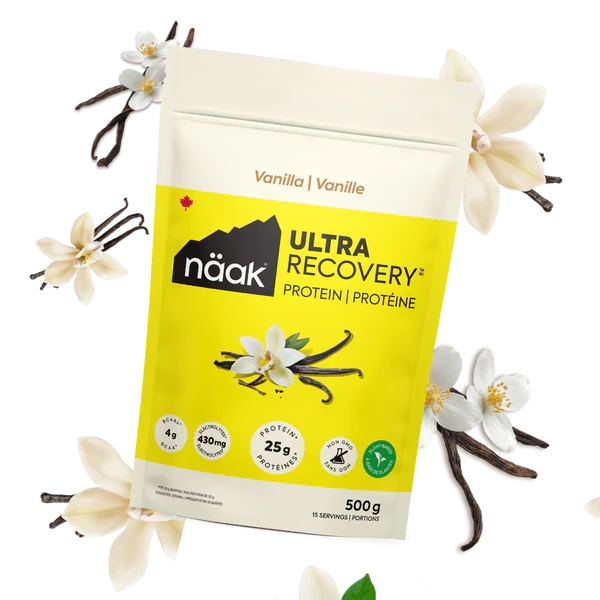 Näak Ultra Recovery™ is a high-protein powder designed to improve the recovery of endurance athletes. It helps you build muscle, decrease muscle soreness and aid in rehydration. With 24g of complete protein and 4g of branched chain amino acids (BCAAs) per serving, it helps you rebuild, refuel & rehydrate after a taxing workout to bounce back stronger the next day.