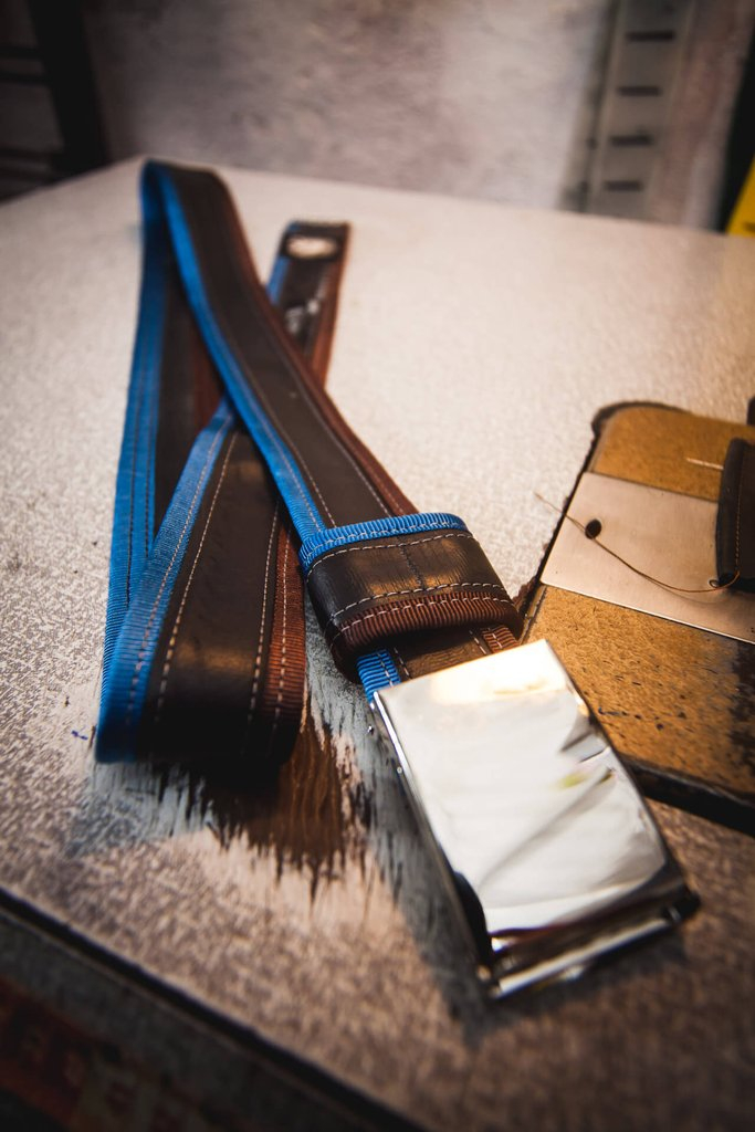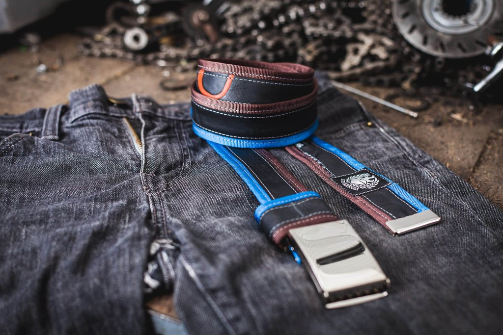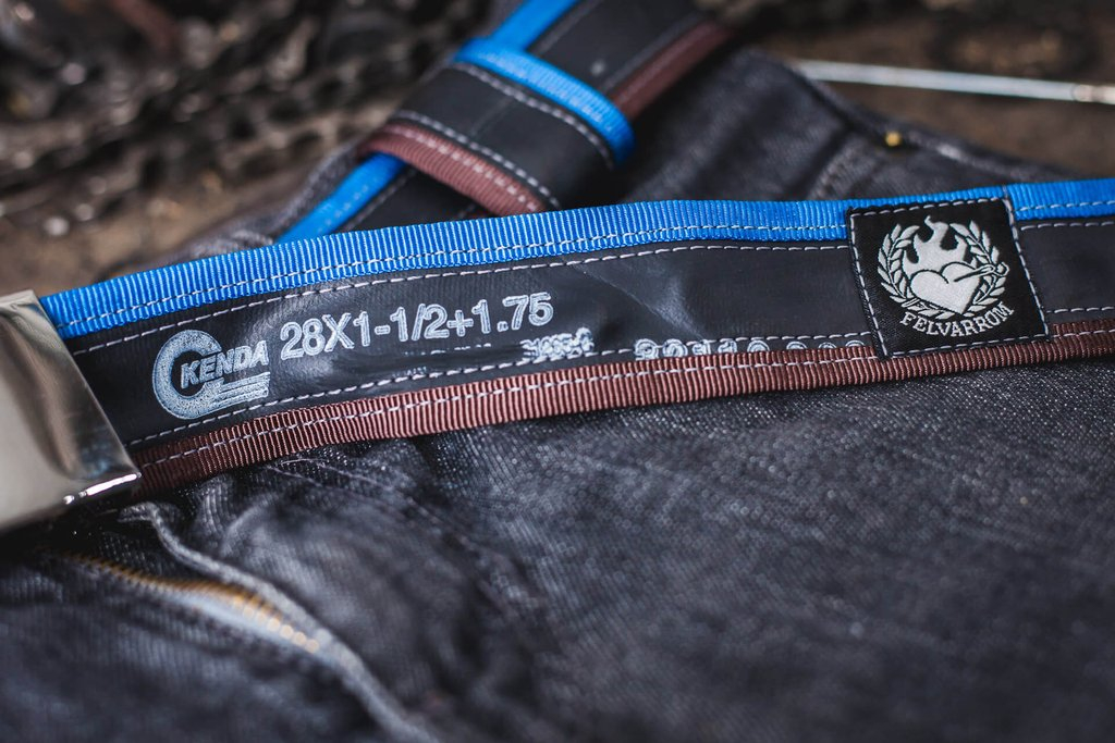 Save the nature! Belt made of carefully selected, high-quality, recycled tubes, with multicolored canvas strips sewn on the side. Each strap has a bike patch on the surface, created in the past life of that tube, so that makes it different and unique. In addition to exceptional durability, these belts are very soft and do not stretch. All the tubes that are collected are thoroughly cleaned, so you don’t have to worry that this strap will leave stains on your pants. The strong flip-top metal clasp is adjustable, does not need holes and does not damage the inner tube surface.