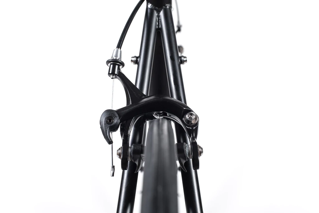 Front and rear dual pivot forged alloy brake set, made by Radius. Offered in black or chrome finish. These are the same brakes included on all State Bicycle Co. 4130 Steel (Fixed Gear / Single-Speed) models.