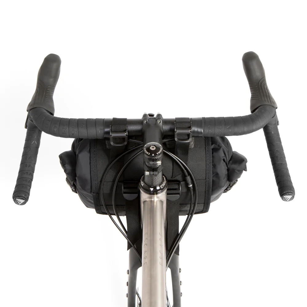Restrap Bar Bag is an ideal and hassle free luggage solution for bikepacking, touring or commuting on road, gravel and mountain bikes. With no rack, mounts or tools required, the bag attaches to any bike in seconds. Foam spacers and spring-loaded cam locks provide an easy and reliable attachment to your handlebars, whilst two lower retention straps wrap around the crown of the fork for added stability.