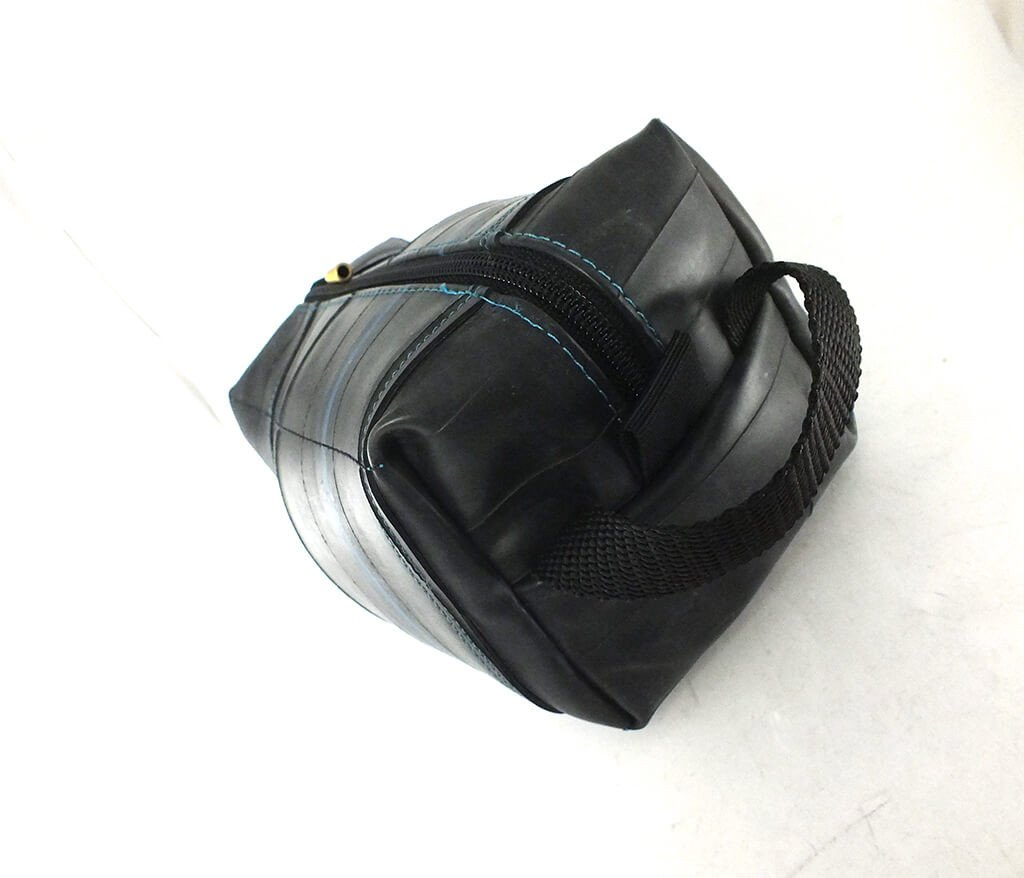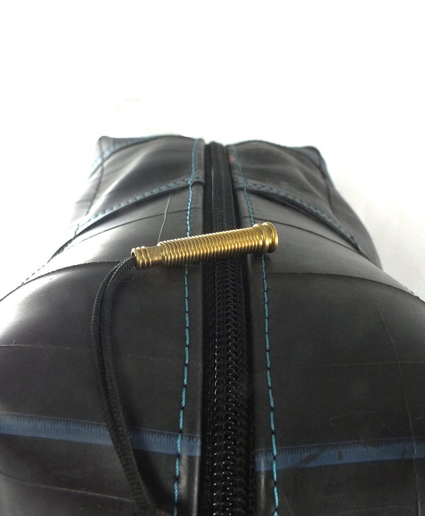 Save the nature! The multi-purpose vanity case is handmade from carefully selected, high-quality recycled tubes. It can be used as a toilet bag, but due to its durability, feel free to convert it into a tool bag. The inside is a solid and quality black fabric. The outside has a carefully cleaned bike tube, so you don’t have to worry about your purse leaving stains on your clothes. On the surface of the recycled tube, you will find bicycle patches created in the past life of that tube. The top of the zipper is a recycled tube valve, and the zipper is metal made.