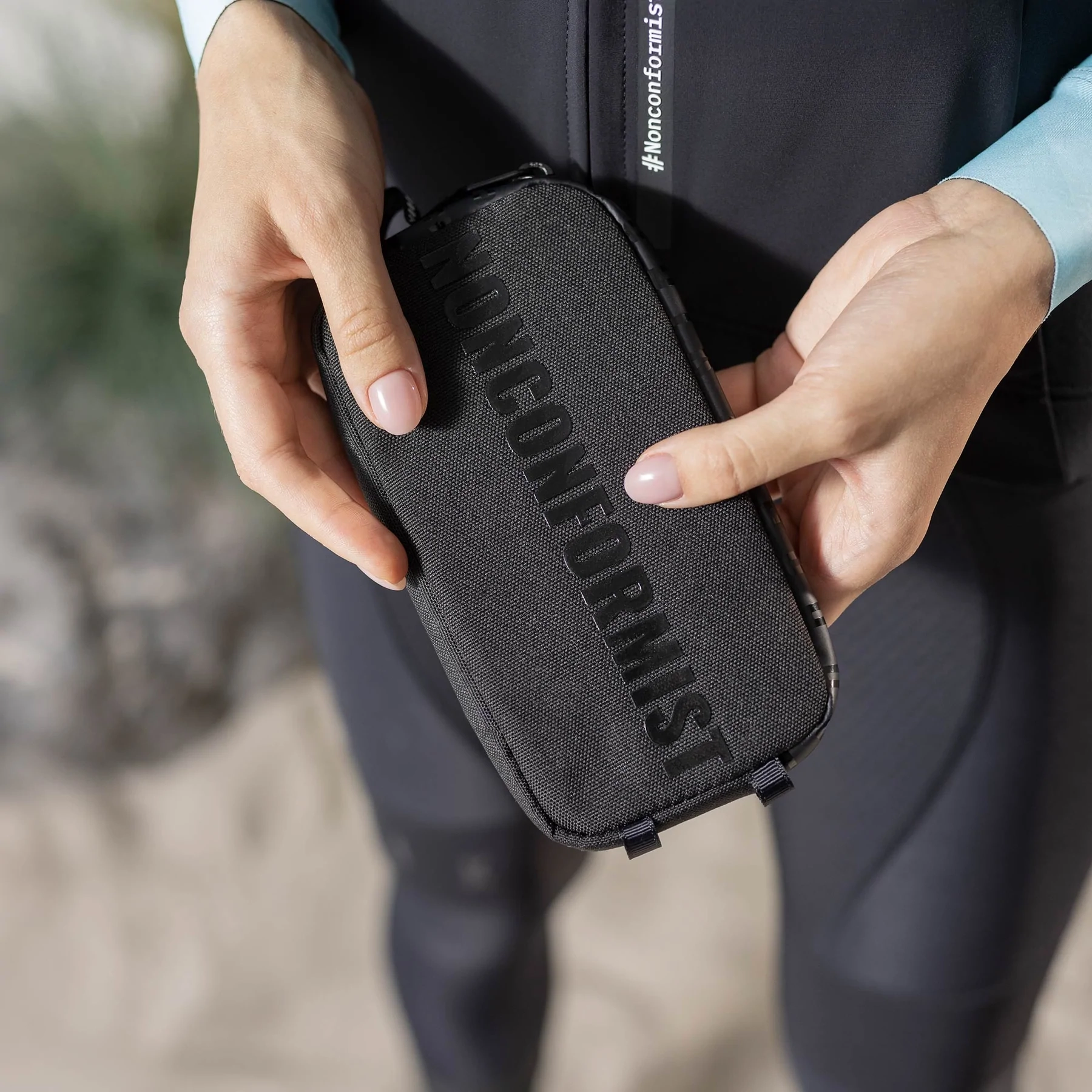 On the outside, the siliconized embossed "NONCONFORMIST" logo, together with a rubber patch GOBIK and a customized textile pull tab, make this case a unique and exclusive piece.