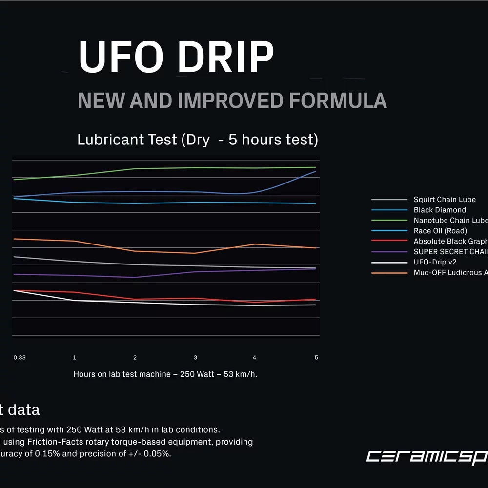 This formula of the CeramicSpeed UFO Drip Chain Coating is even faster and longer lasting than the first formula.
