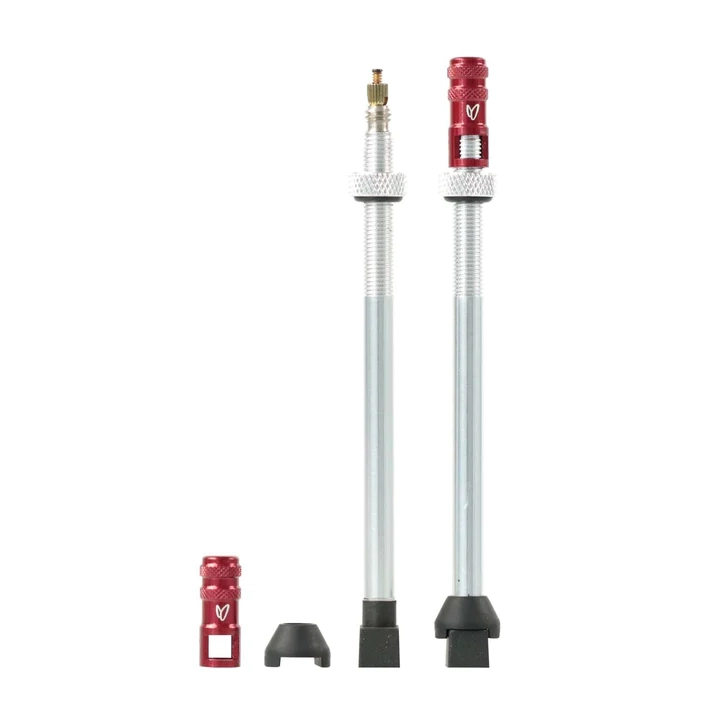 - Each pack includes two Caffélatex Tubeless Valves, two anodized aluminum caps, two rubber conic adapters, two nuts, two o-rings and a Presta mechanism/valve extension key.