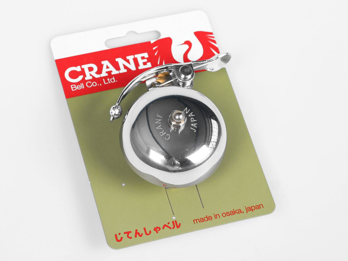 Crane bells are made in Osaka, Japan. These traditional designs are timeless and have beautiful clear ring tones. This is the larger size from Crane, designed to fit pretty much any handlebar, that is plenty loud – 50% louder than the little brass bells that aren’t quite loud enough, and louder even than your typical “ding-ding” bells. Every bike should have one.
