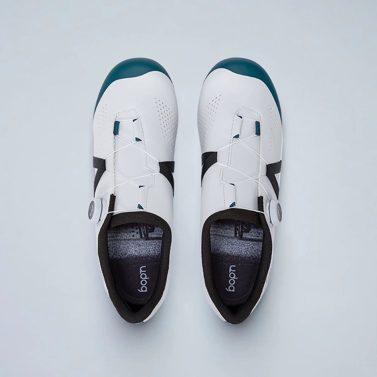 - VANJSKI POTPLAT: Potplat od kompozita karbona i najlona uključuje usmjereni ventilacijski kanal za protok zraka, integrirane gumene jastučiće za petu i prste za prianjanje te široku metatarzalnu platformu za sigurno prianjanje cipele. Matice potplata od legure titana omogućuju podešavanje prema natrag od 5mm, dajući biciklistima veću kontrolu nad svojim položajem i učinkovitošću.