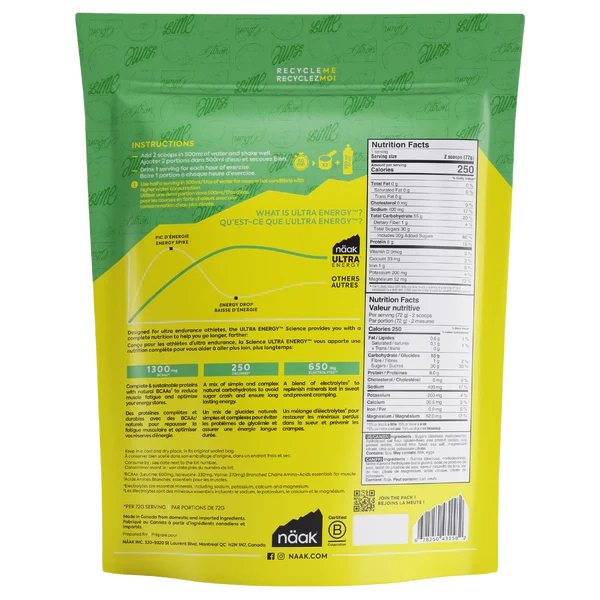 Razvijen u suradnji s profesionalnim sportašima, Näak Ultra Energy™ Drink Mix prva je mješavina pića koja daje potpune proteine (EAA) i BCAA na optimiziranim razinama za dugotrajne napore, sprječavajući degradaciju mišićnih vlakana tijekom duge i intenzivne tjelesne aktivnosti.