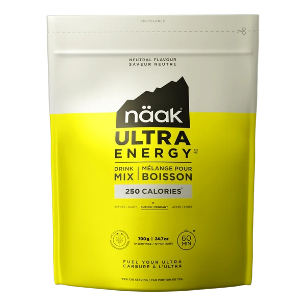 Napajajte svoju ultra tjelovježbu tekućom energijom. Napravljen od 11% prerađenih sastojaka, Näak Ultra Energy™ mješavina nudi 250 kalorija na 500ml vode. Brzog djelovanja i lake probave, pruža sve hranjive tvari koje su vam potrebne za ultra utrku. Vrećica od 720g daje ukupno 10 porcija od 500ml ili 5L mješavine ovog napitka.