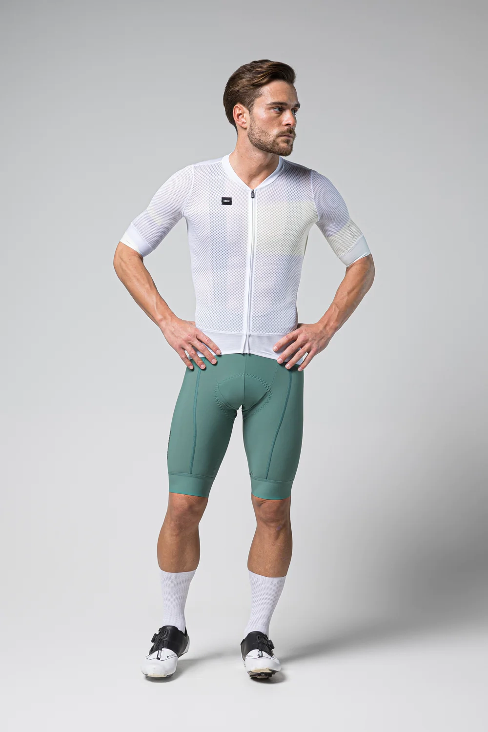 - Koristi jedinstvenu kombinaciju tkanina, ručno šivanih, koja smanjuje aerodinamički otpor na prednjem dijelu i rukavima zahvaljujući svojoj teksturiranoj završnoj obradi, dok favorizira protok zraka na leđima, s glatkom mikroperforiranom završnom obradom.