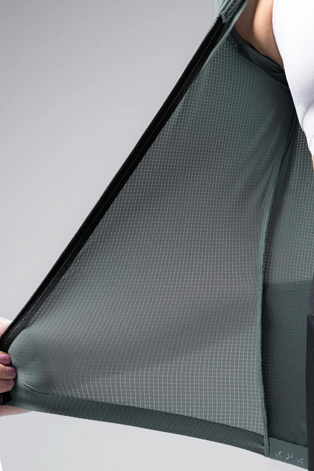 - Skriveni prednji patentni zatvarač ima minimalnu težinu i nudi minimalistički završetak. Njegova visoka elastičnost smanjuje bore u donjem dijelu trbuha, nudeći savršeno pristajanje dok ste na biciklu.