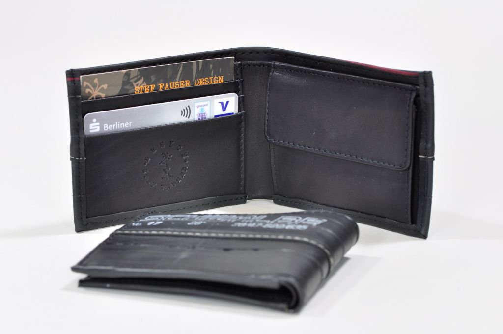 Stef Fauser Scheininger je novčanik za moderne i ekološki osviještene bicikliste/ice. Izvana je izrađen od starih recikliranih zračnica, a iznutra od crne kože. Izuzetno je kompaktan, tako da ovaj novčanik možete jednostavno staviti u džep i njime manipulirati kada Vam zatreba.