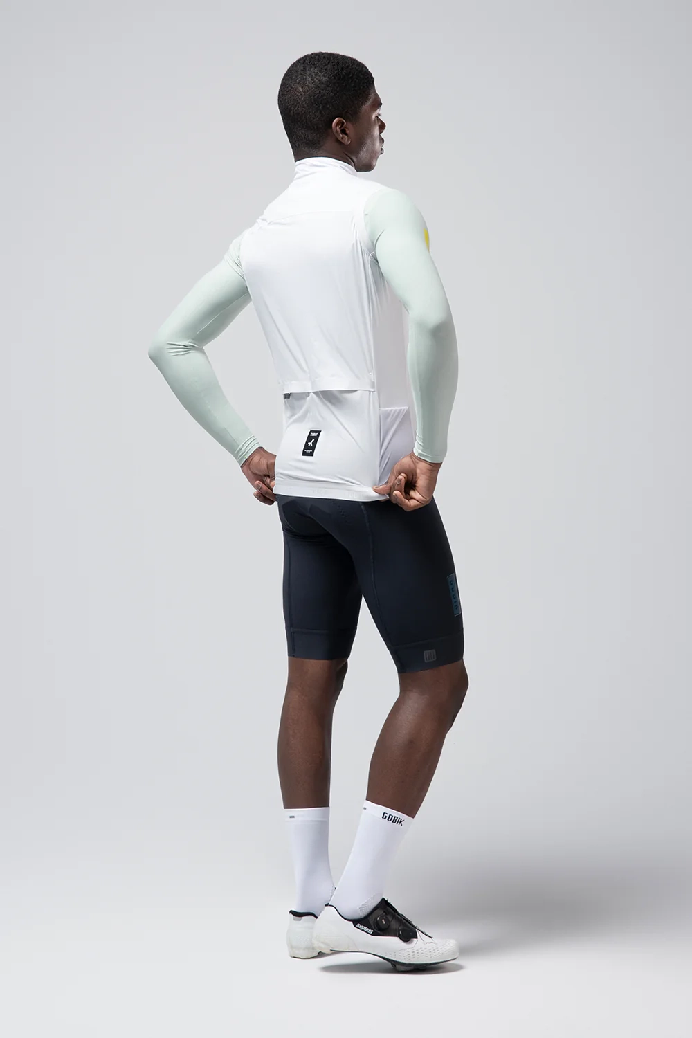 Ultralagan i sklopiv, s novim optimiziranim uzorkom koji poboljšava aerodinamiku na biciklu. Kombinira najlonske i elastanske tkanine koje nude učinkovitu zaštitu uz veliku prilagodljivost zahvaljujući optimalnoj elastičnosti.