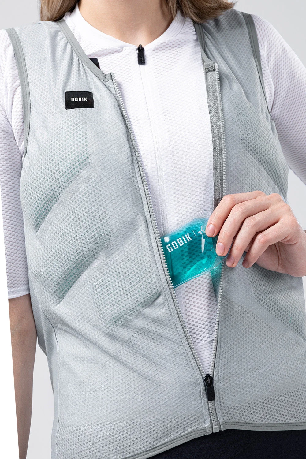 Gel paketi za hlađenje, razvijeni posebno za ovaj sustav, formulirani su za smanjenje i stabilizaciju tjelesne temperature tijekom procijenjenih 45 do 60 minuta, osiguravajući aktivnu termoregulaciju bez ugrožavanja fizičkih performansi.