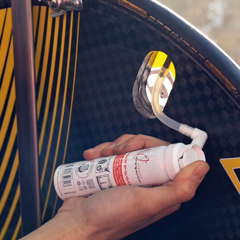 Espresso je spremnik za napuhavanje i popravak: biciklistima omogućuje brzo popravljanje bušenja, ubrizgavanjem pjene Caffélatex-a kroz Presta ventile. Idealno za cestovni i brdski biciklizam kao i za triatlon.
