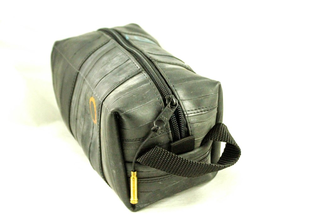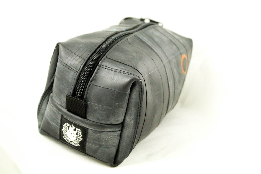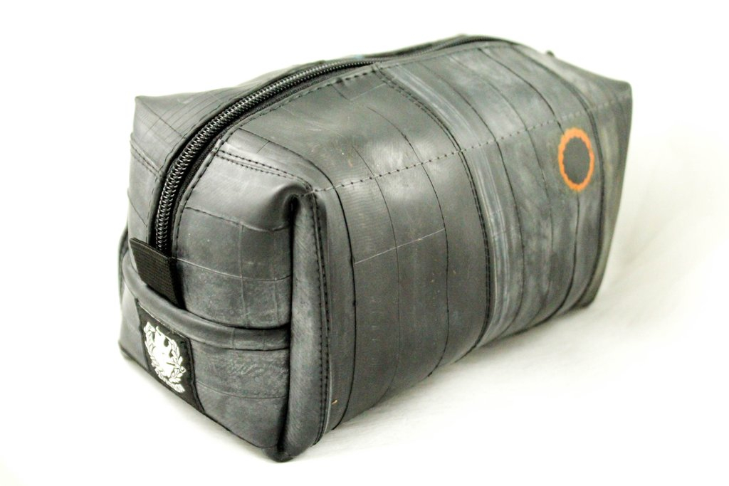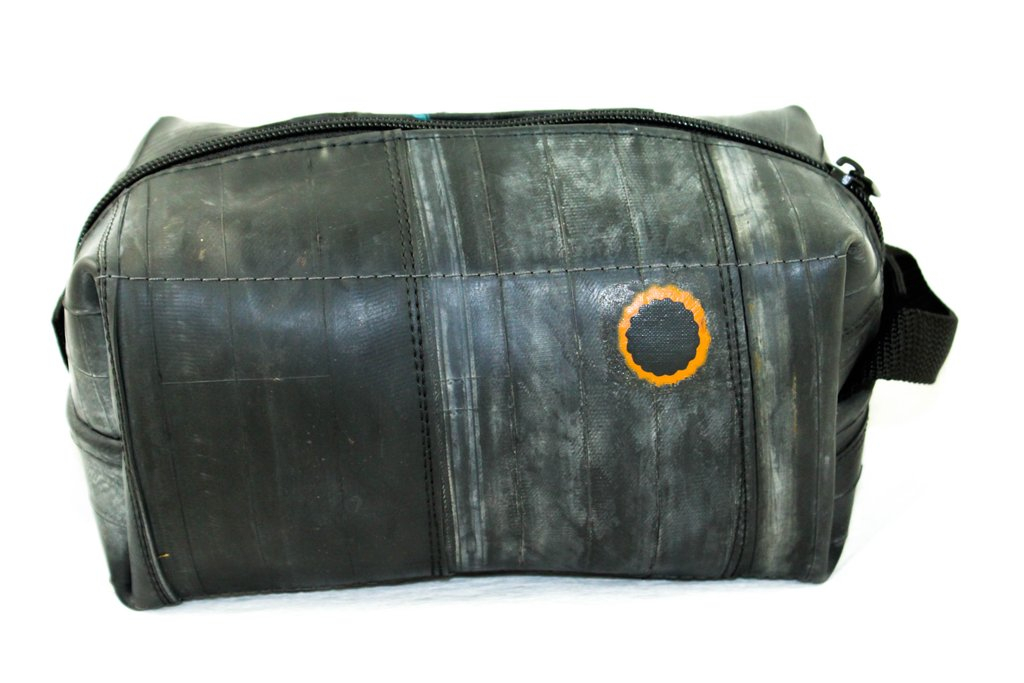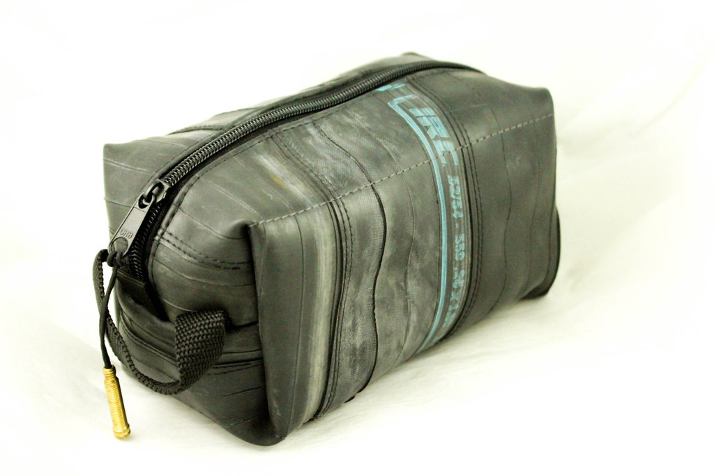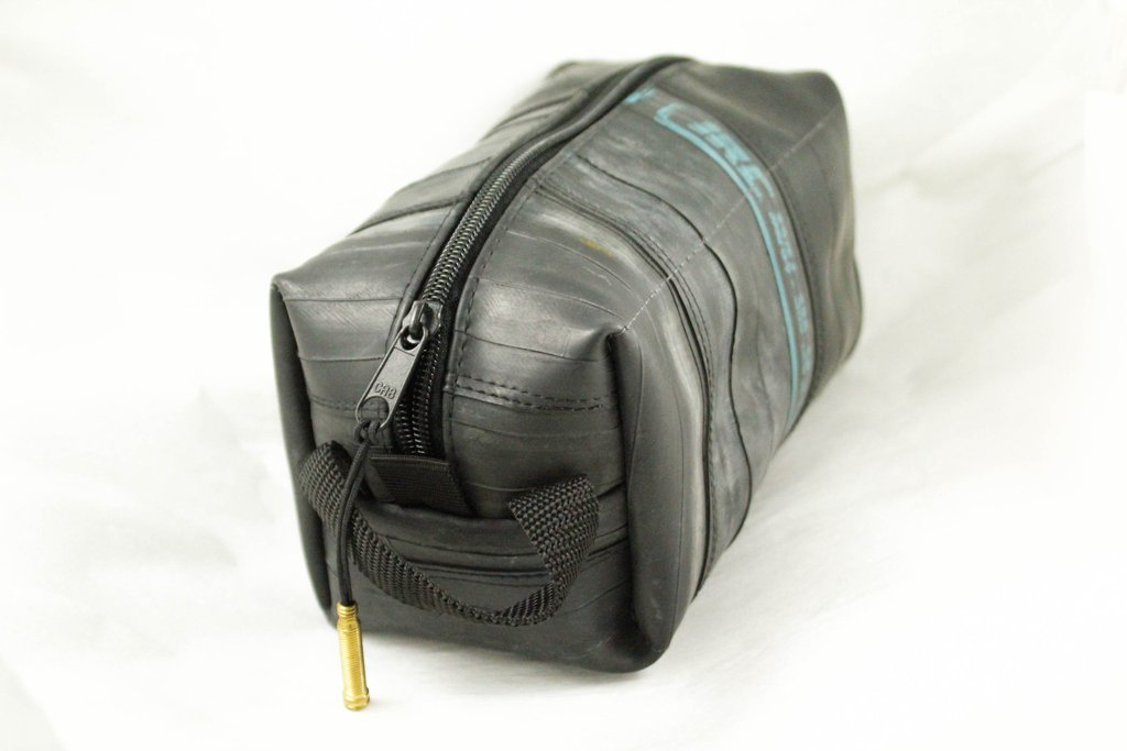 Čuvajte prirodu! Višenamjenska torbica ručno je izrađena od pažljivo odabranih, visokokvalitetnih recikliranih zračnica. Upotrebljiva je kao toaletna, ali zbog njezine izdržljivosti slobodno je prenamijenite u torbicu za alat. Unutarnja strana je čvrsta i kvalitetna crna tkanina. Vanjska strana je pažljivo očišćena zračnica bicikla, pa se ne morate brinuti da će vam torbica ostaviti mrlje na odjeći. Na površini reciklirane zračnice pronaći ćete biciklističke zakrpe nastale u prošlom životu te zračnice. Vrh patentnog zatvarača je reciklirani ventil zračnice, a patentni zatvarač je metalni.